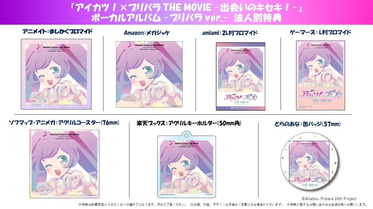 『アイカツ!×プリパラ THE MOVIE -出会いのキセキ!-』ボーカルアルバム -プリパラ ver.-の店舗特典一覧