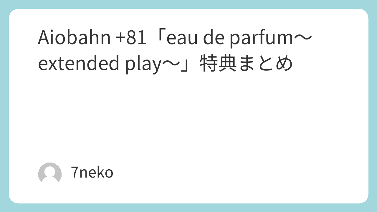 Aiobahn +81「eau de parfum ~extended play~」特典まとめ