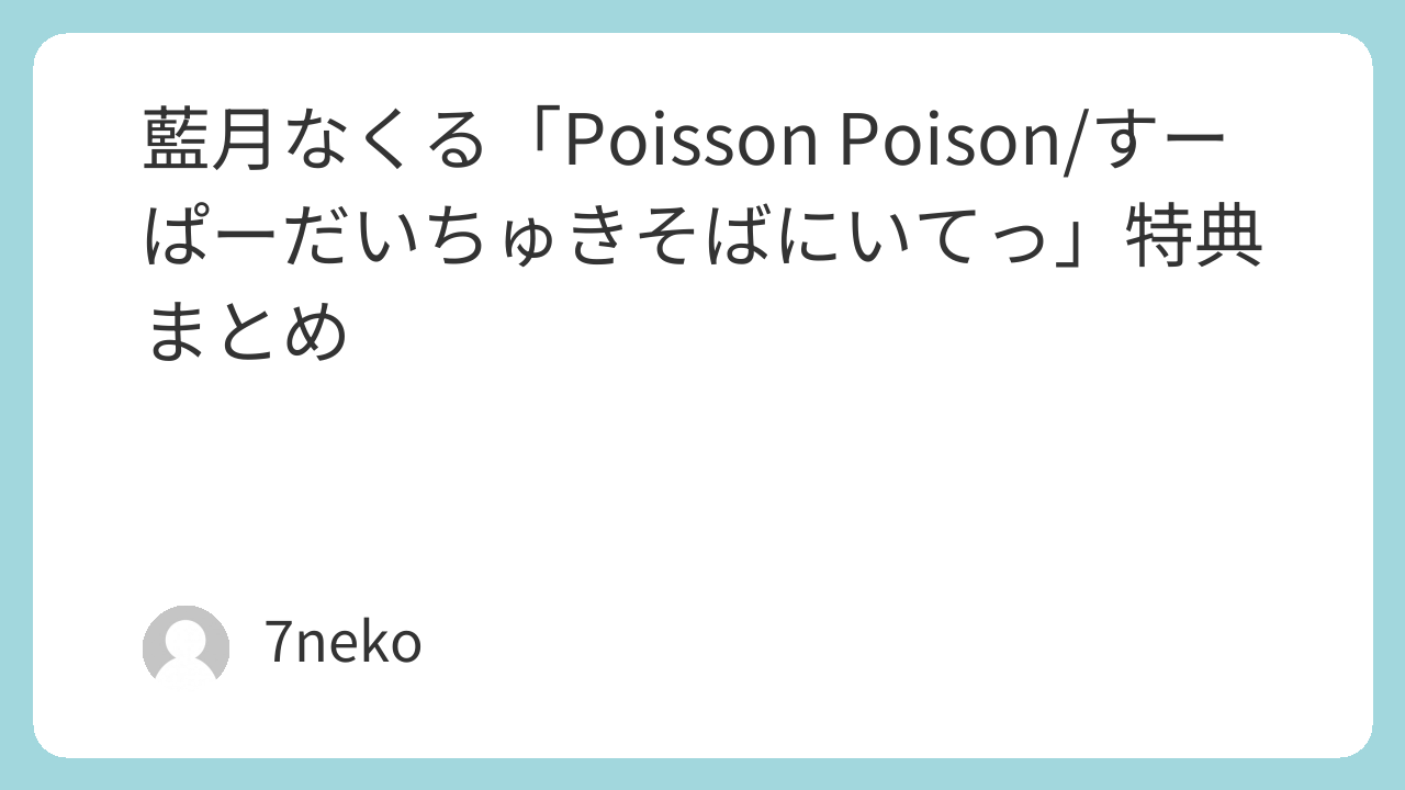 藍月なくる「Poisson Poison/すーぱーだいちゅき♡そばにいてっ」特典まとめ