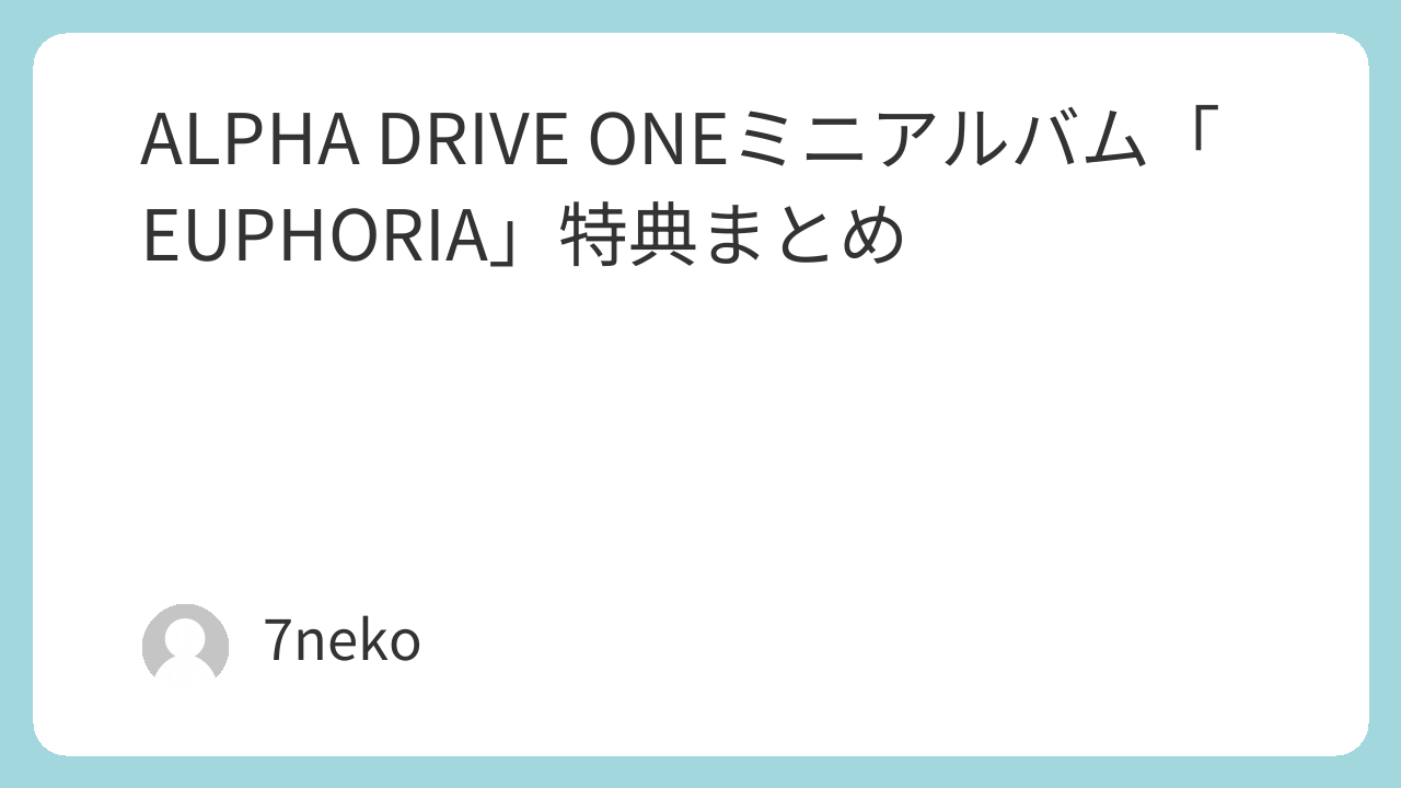 ALPHA DRIVE ONEミニアルバム「EUPHORIA」特典まとめ