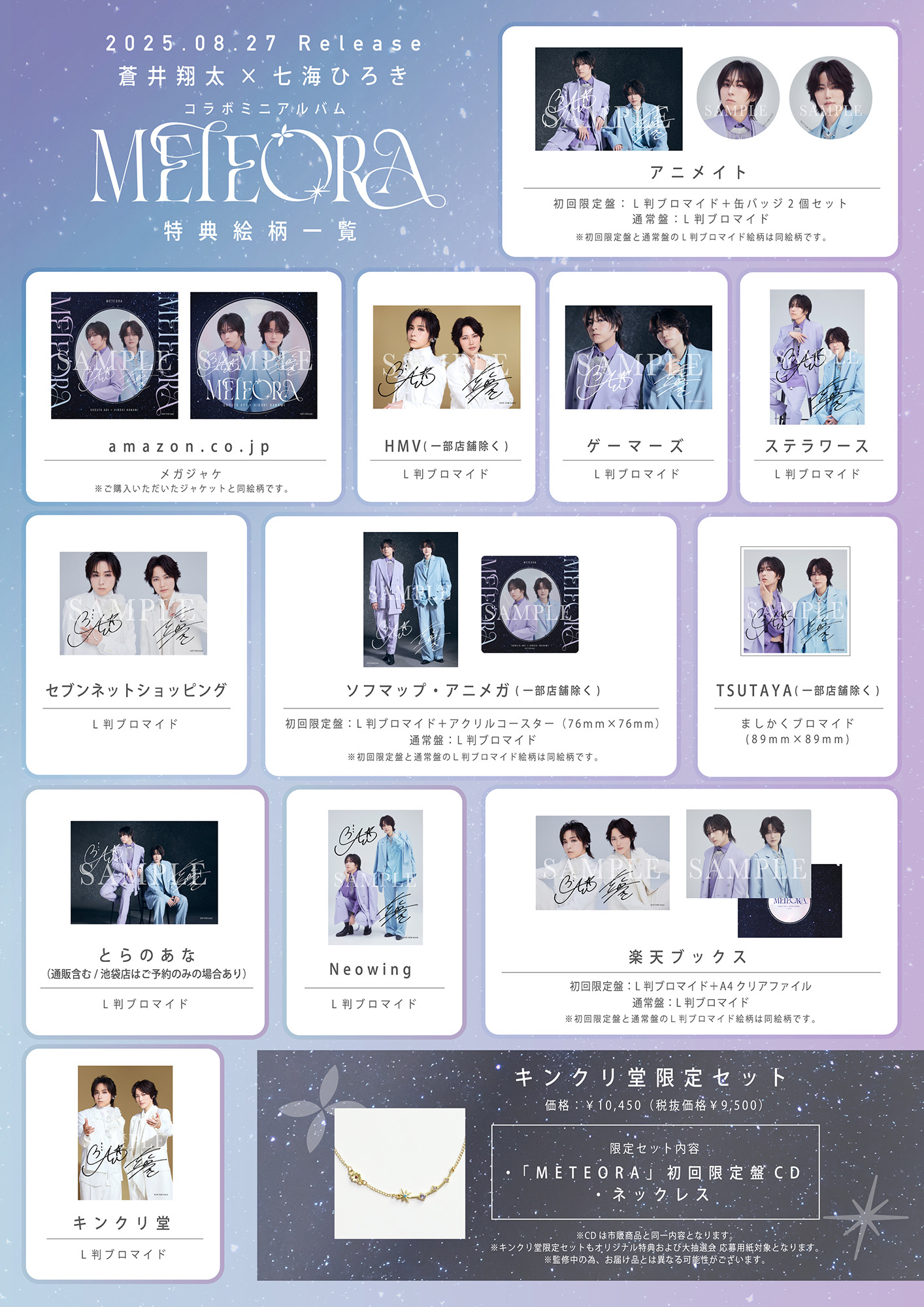 蒼井翔太×七海ひろきコラボミニアルバム「METEORA」の店舗特典一覧