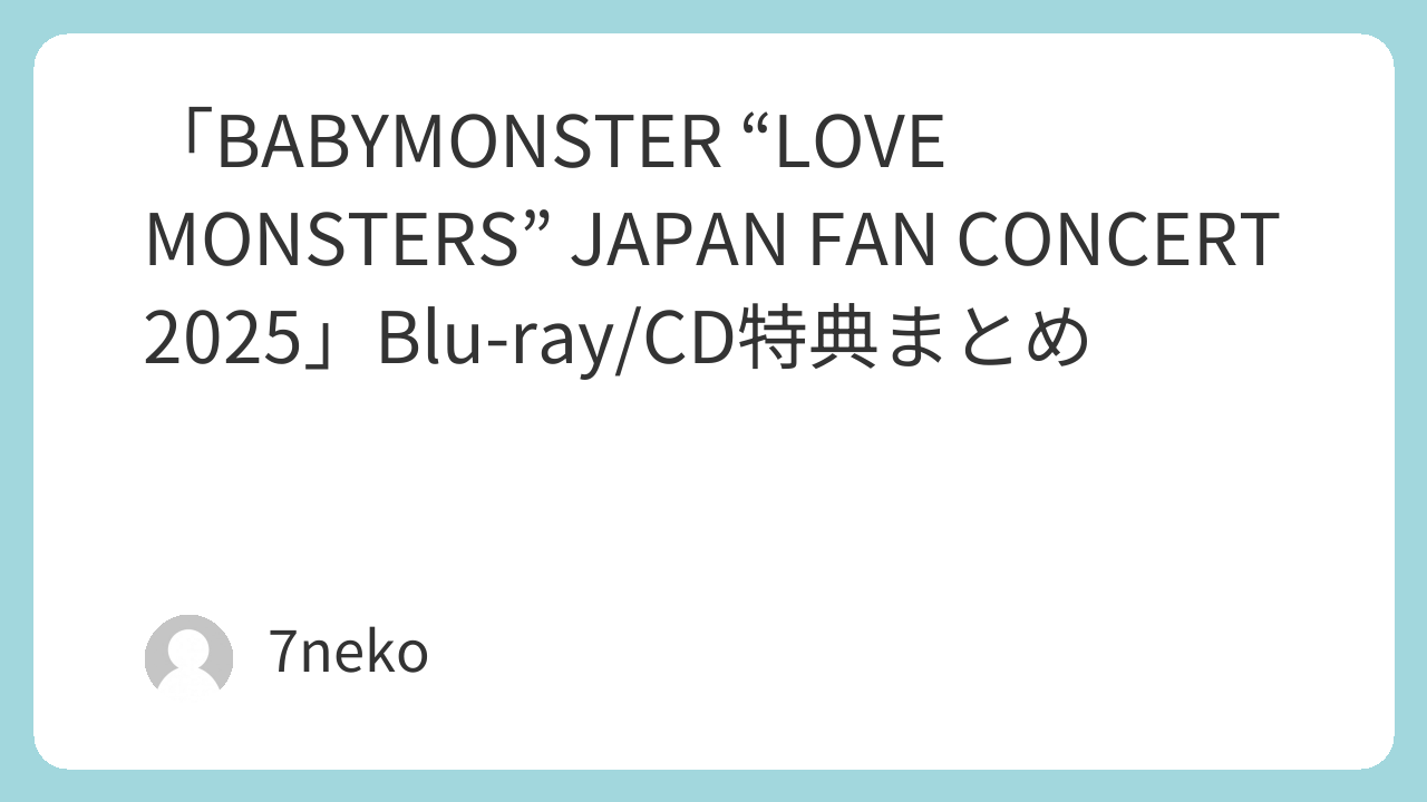 「BABYMONSTER “LOVE MONSTERS” JAPAN FAN CONCERT 2025」Blu-ray/CD特典まとめ