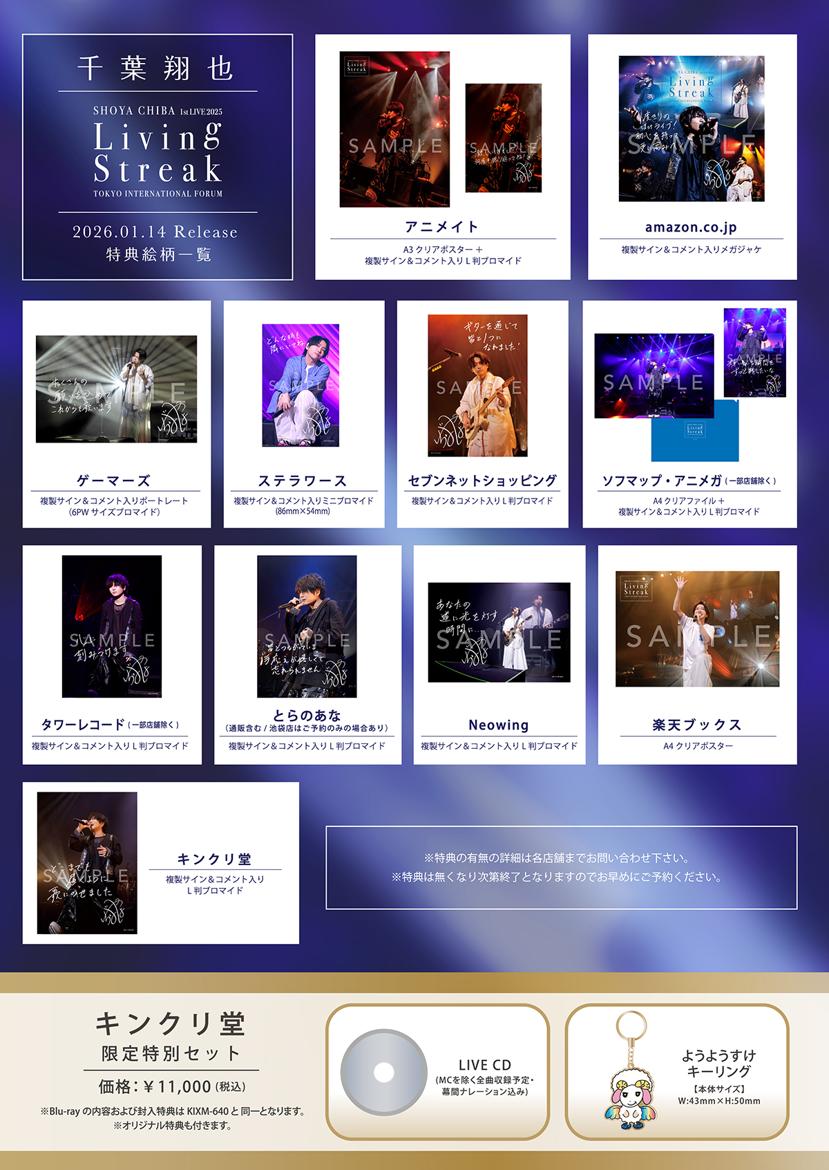 「千葉翔也 1st Live 2025「Living Streak」TOKYO INTERNATIONAL FORUM」Blu-rayの店舗特典一覧