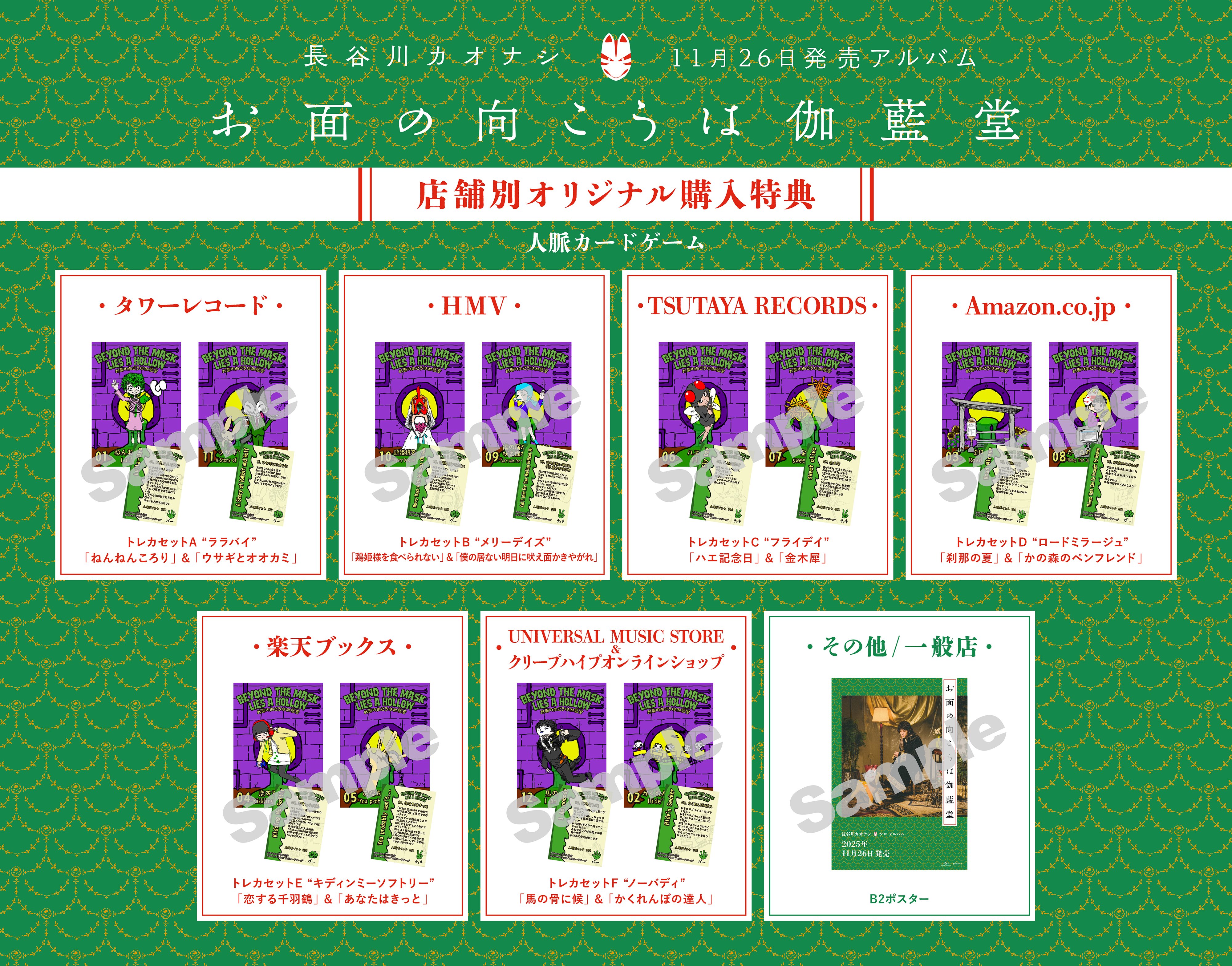 長谷川カオナシアルバム「お面の向こうは伽藍堂」の店舗特典一覧