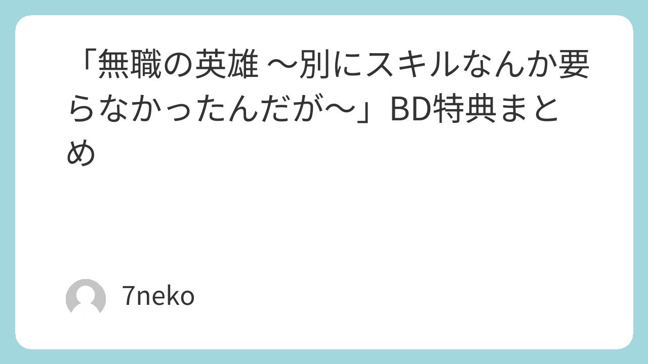 「無職の英雄 ~別にスキルなんか要らなかったんだが~」BDの店舗特典一覧