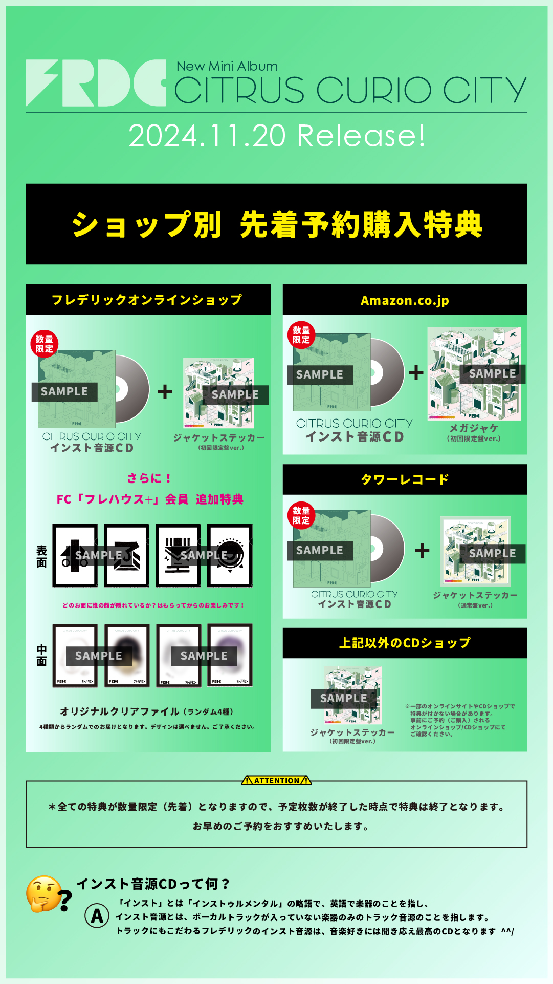 フレデリック6thミニアルバム「CITRUS CURIO CITY」特典まとめ
