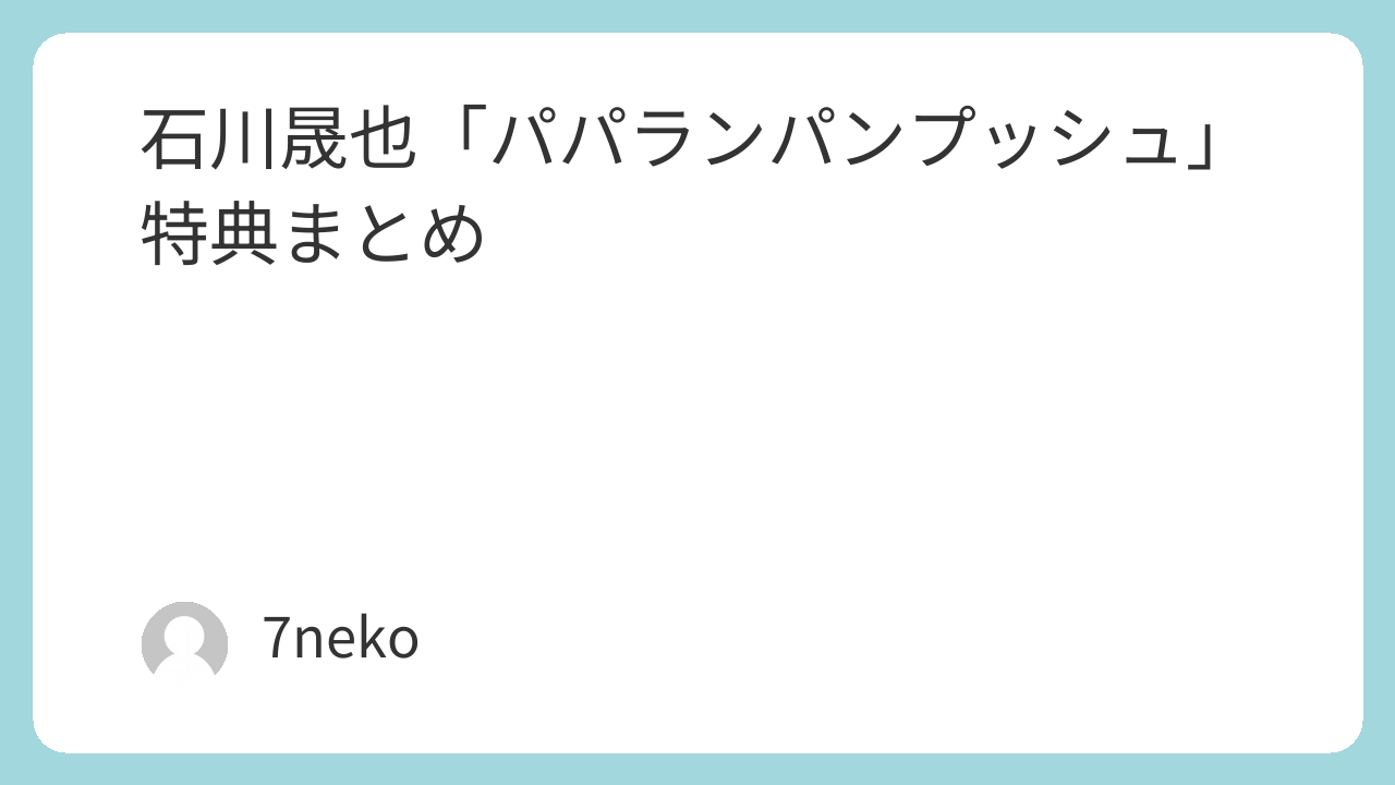 石川晟也「パパランパンプッシュ」特典まとめ