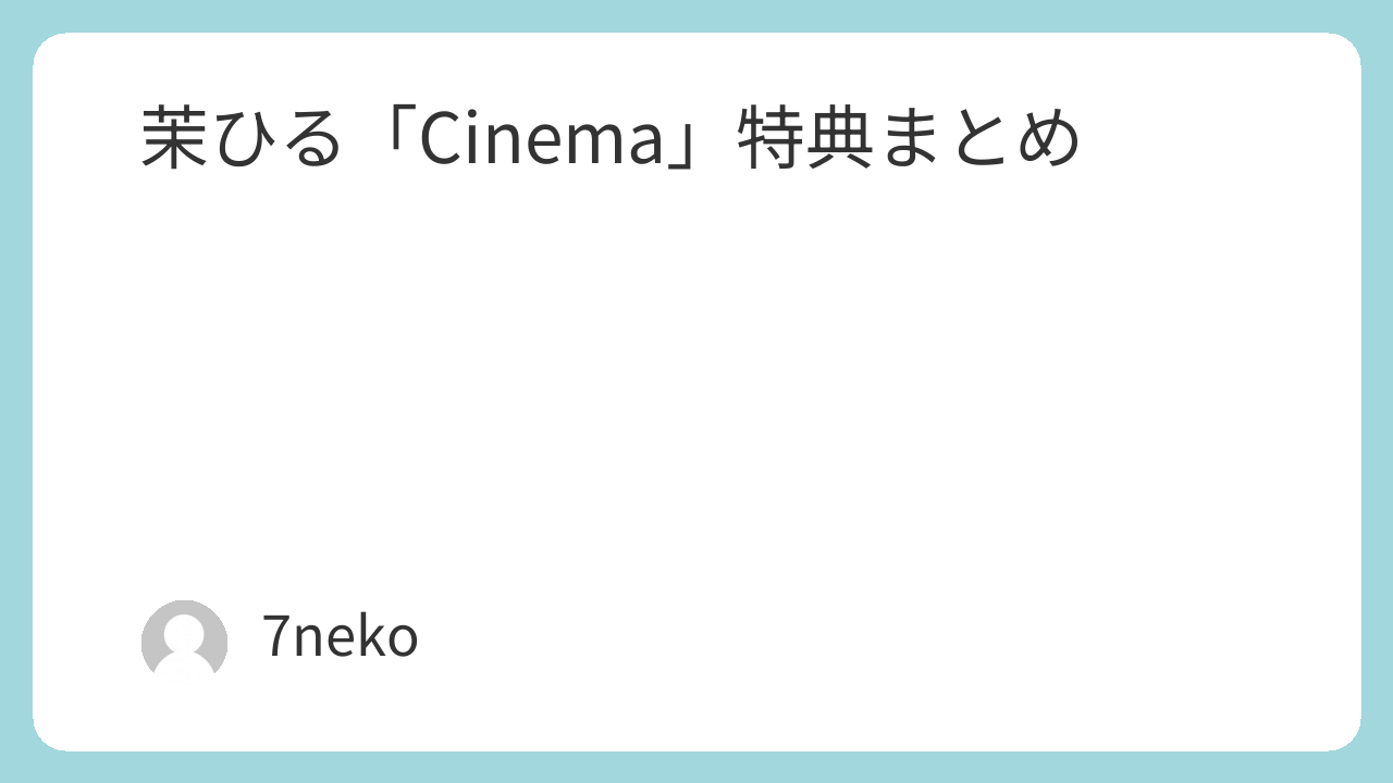 茉ひる「Cinema」特典まとめ