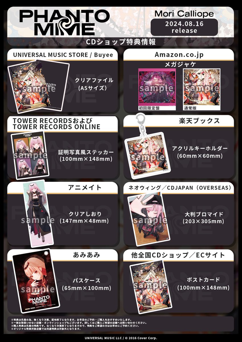 Mori Calliope「PHANTOMIME」の店舗特典一覧