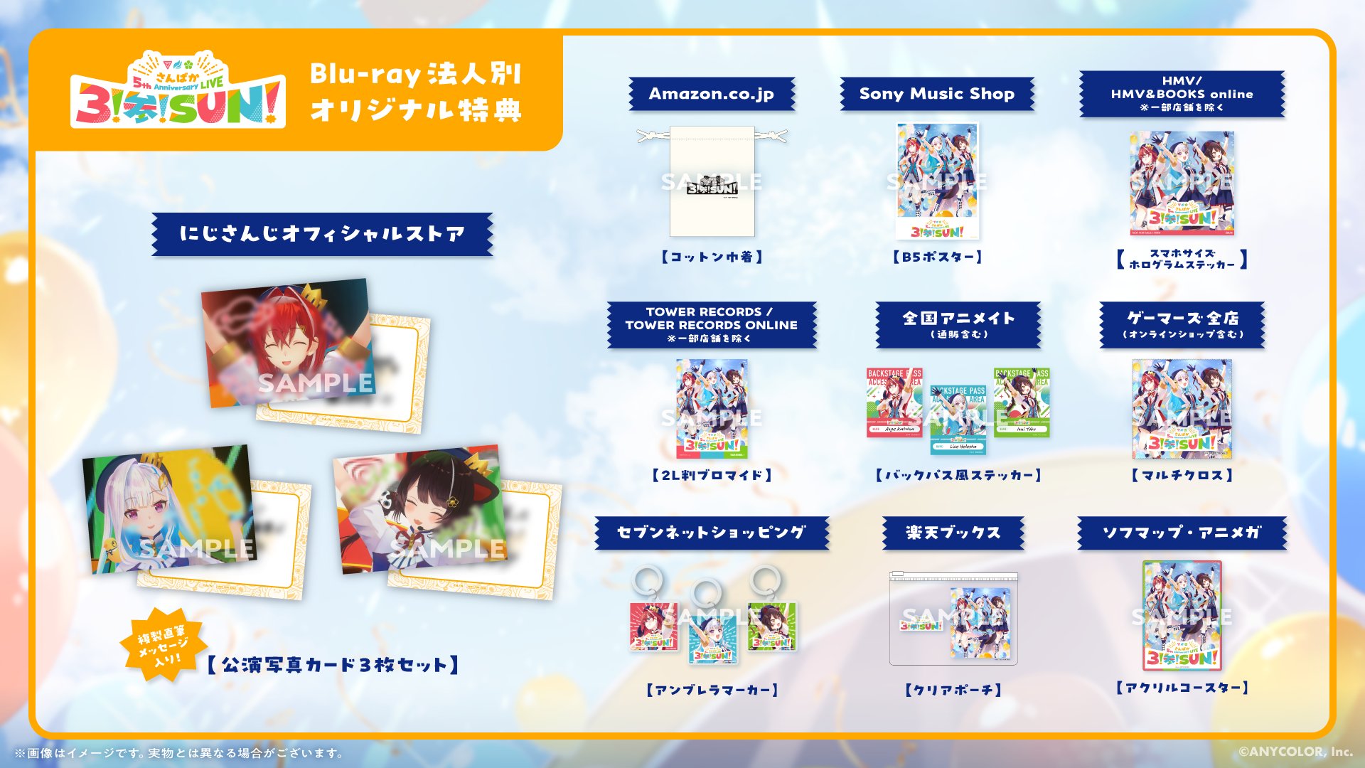 「さんばか 5th Anniversary LIVE 〜3!参!SUN!〜」BDの店舗特典一覧