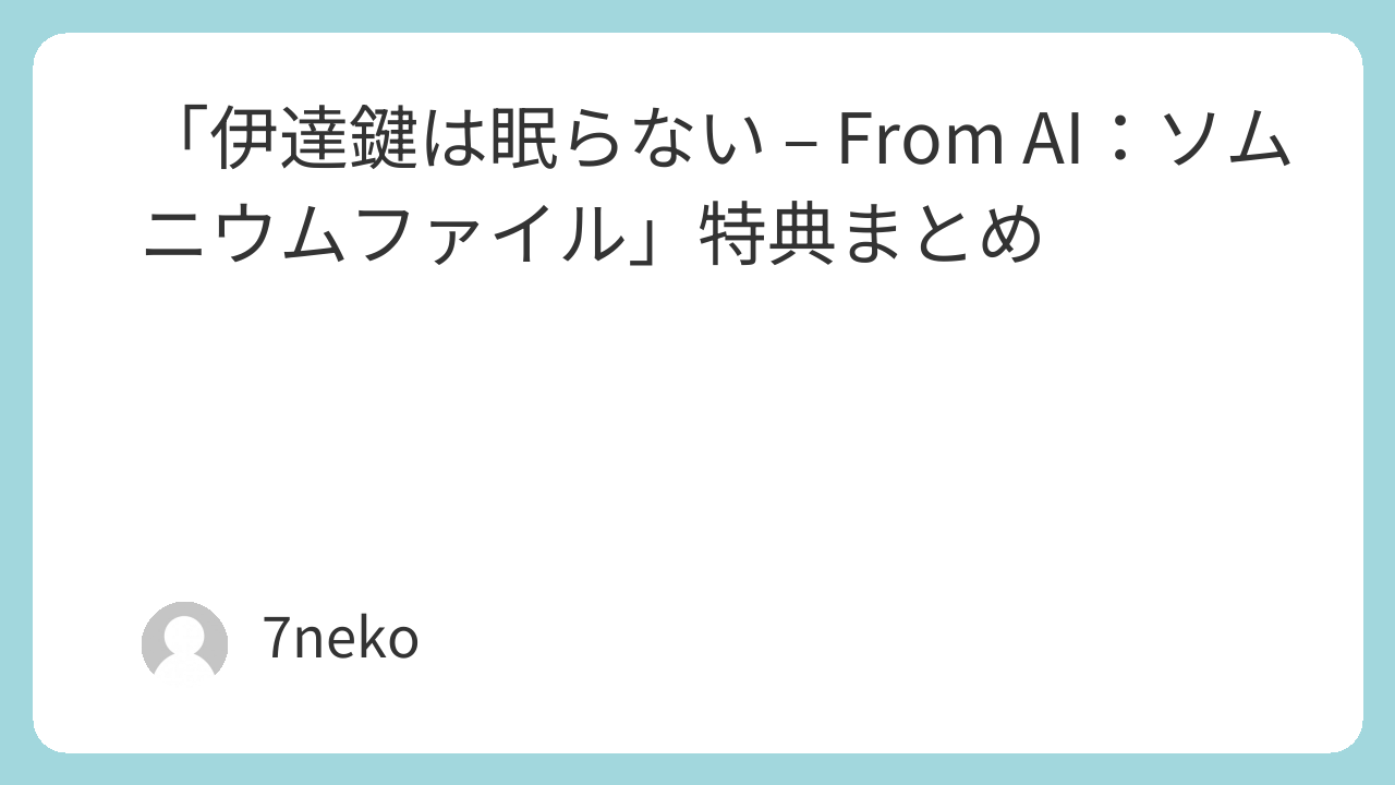 | タイトル | 伊達鍵は眠らない – From AI:ソムニウムファイル |