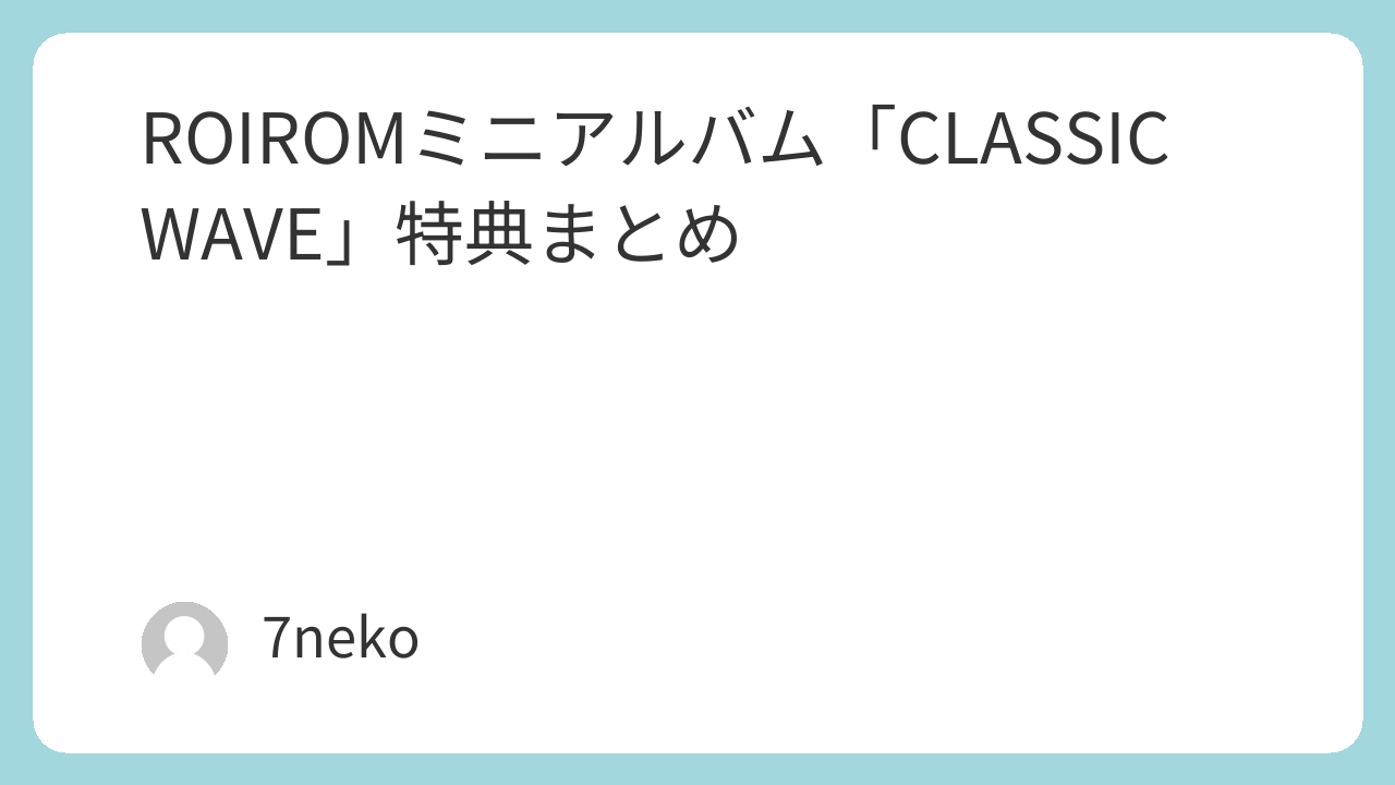 ROIROMミニアルバム「CLASSIC WAVE」特典まとめ