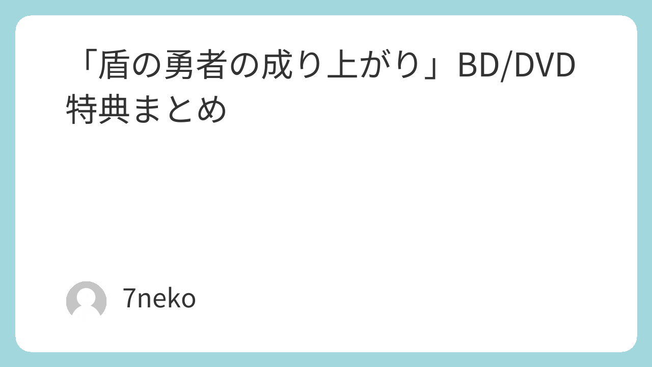 「盾の勇者の成り上がり Season 3(3期)」BD/DVD特典まとめ