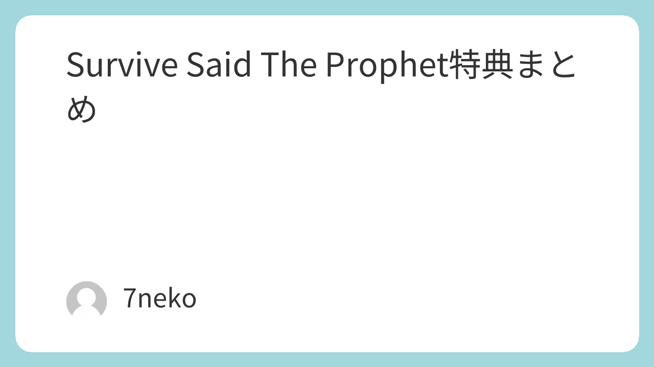Survive Said The Prophet「Speak of the Devil」特典まとめ