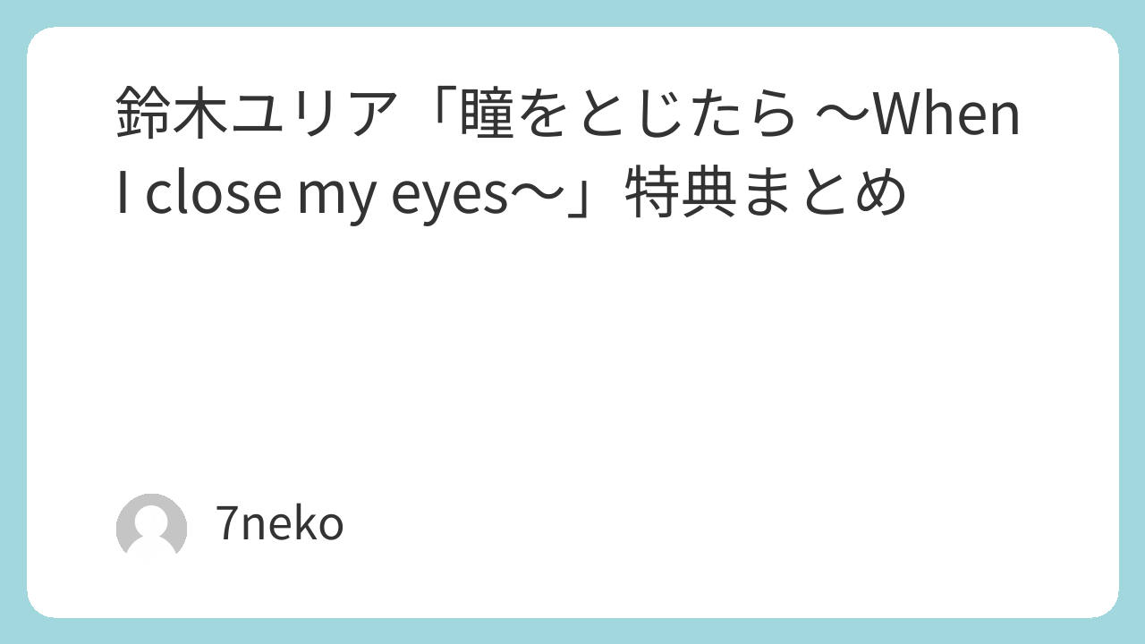 鈴木ユリア「瞳をとじたら ~When I close my eyes~」特典まとめ