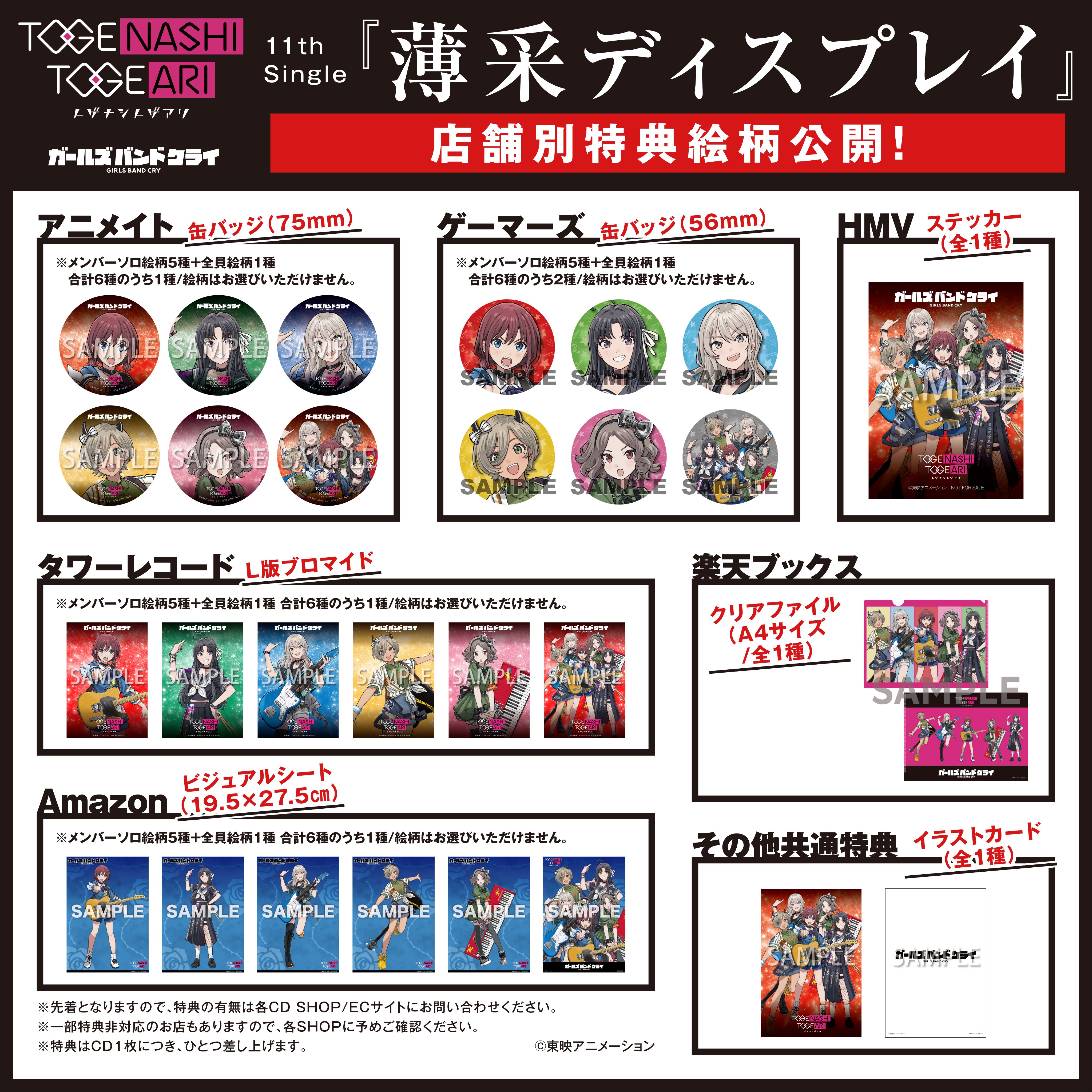 トゲナシトゲアリ「薄采ディスプレイ」の店舗特典一覧