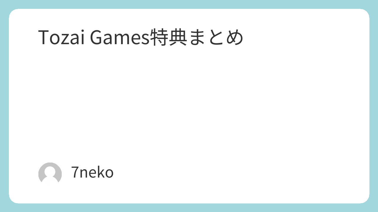 | メーカー | Tozai Games |