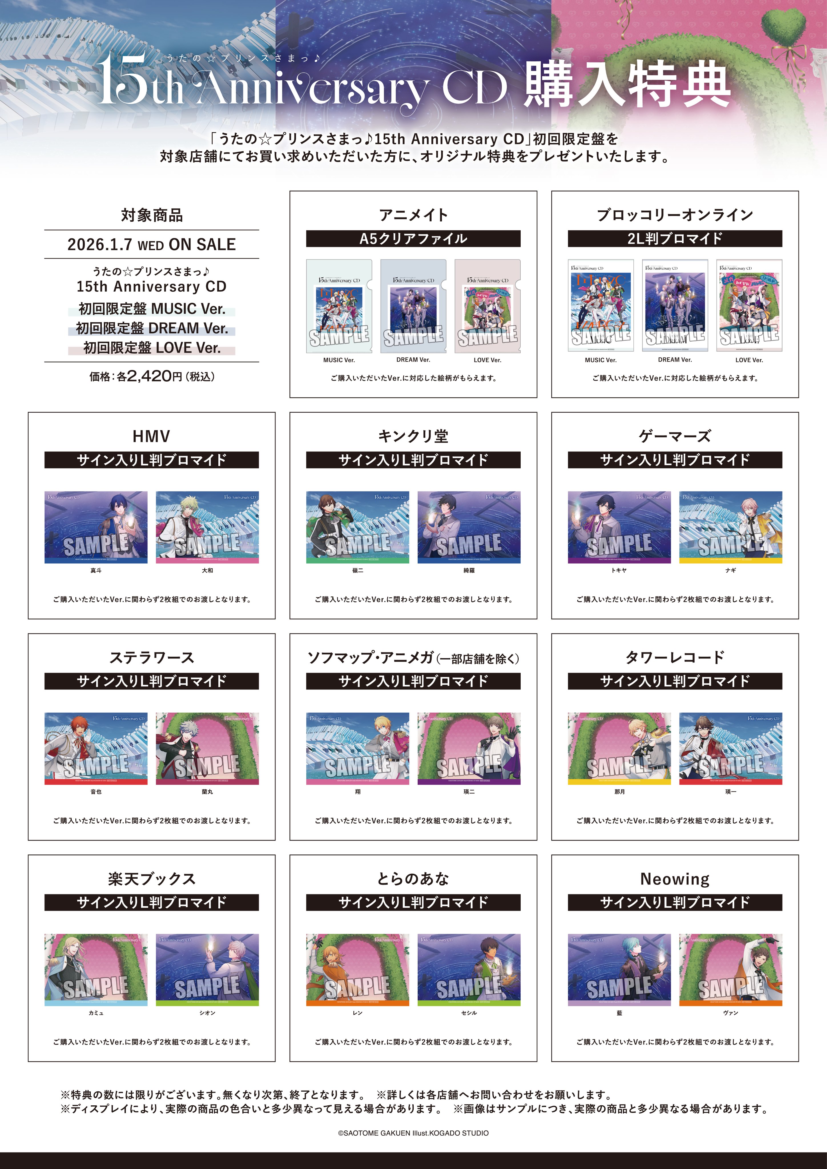 「うたの☆プリンスさまっ♪15th Anniversary CD」の店舗特典一覧